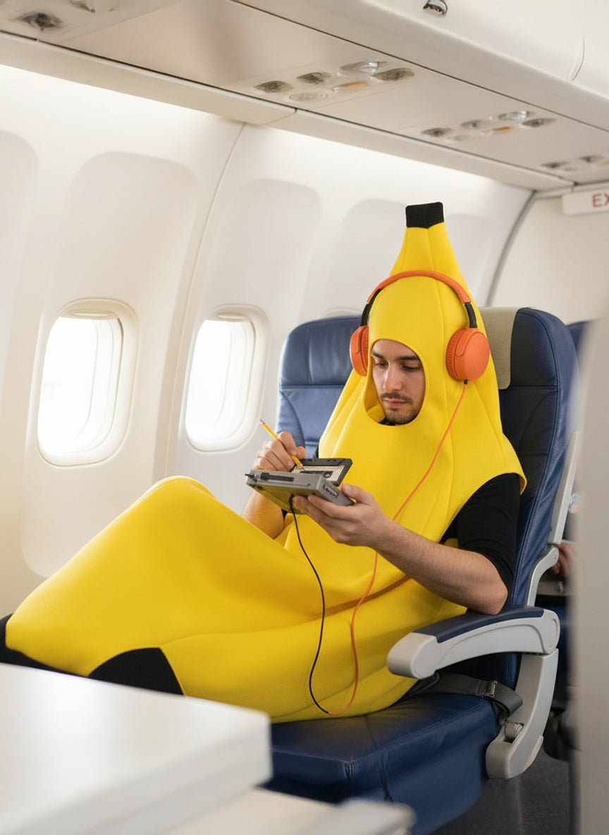 Gráficos estilo infografía noventera, ansiedad empaquetada con humor pop, y un fucsia imposible que parece venir directo de una cabina presurizada en 1998.